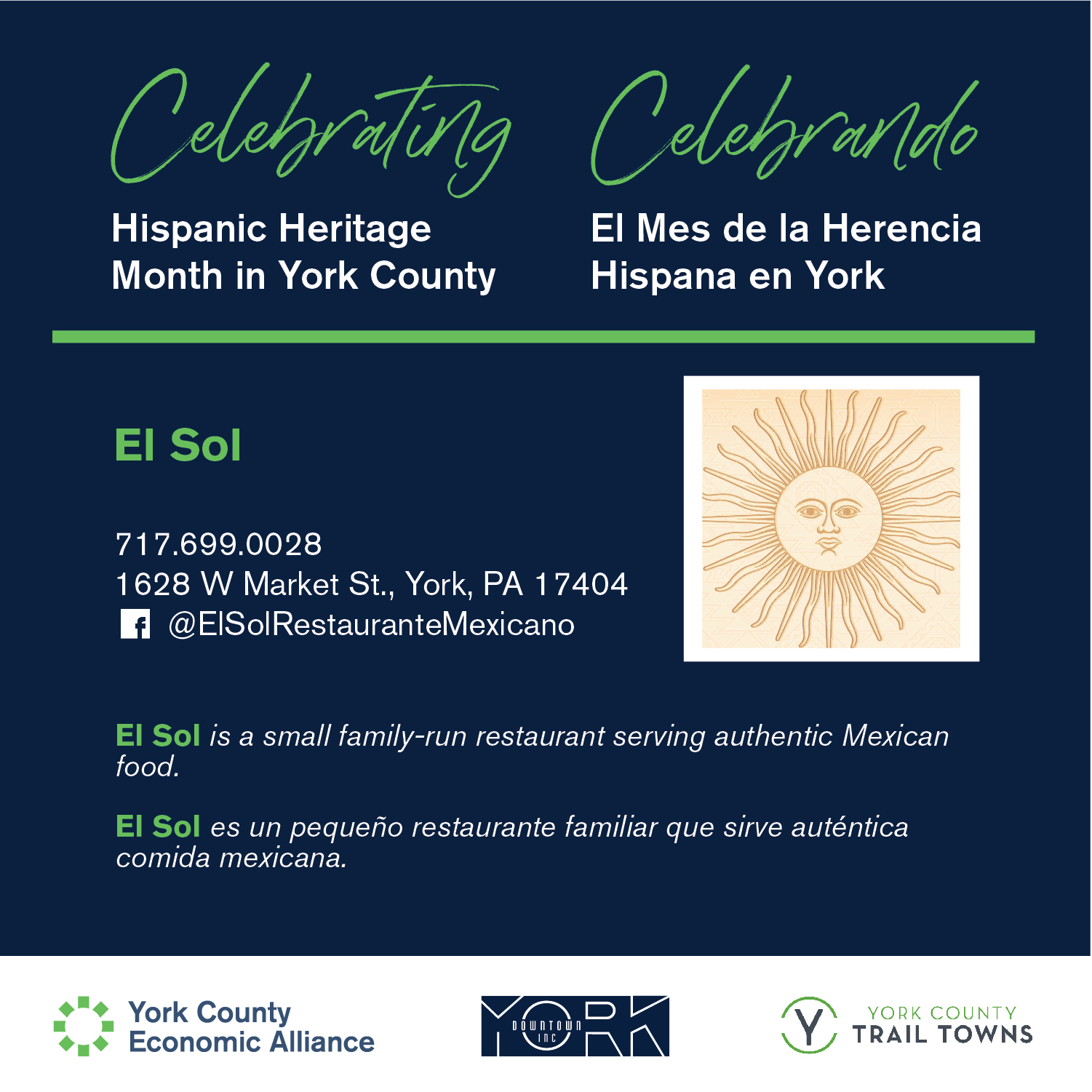 El Sol restaurant has been a family owned business in the heart of Danforth village since 1991. 1628 W MARKET ST York PA 17404 Phone. You can specify link to the menu for El Sol Mexicana Store using the form above.